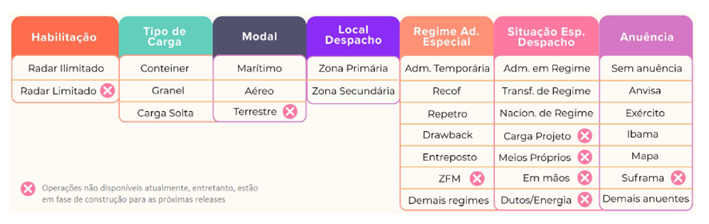 Nota 1: Entidades cuja natureza jurídica se enquadre no Grupo 1 – Administração Pública – da Tabela de Natureza Jurídica da Comissão Nacional de Classificação, continuarão realizando o registro de importações por Declaração de Importação (DI). O ligamento para esse grupo se dará em etapa futura.